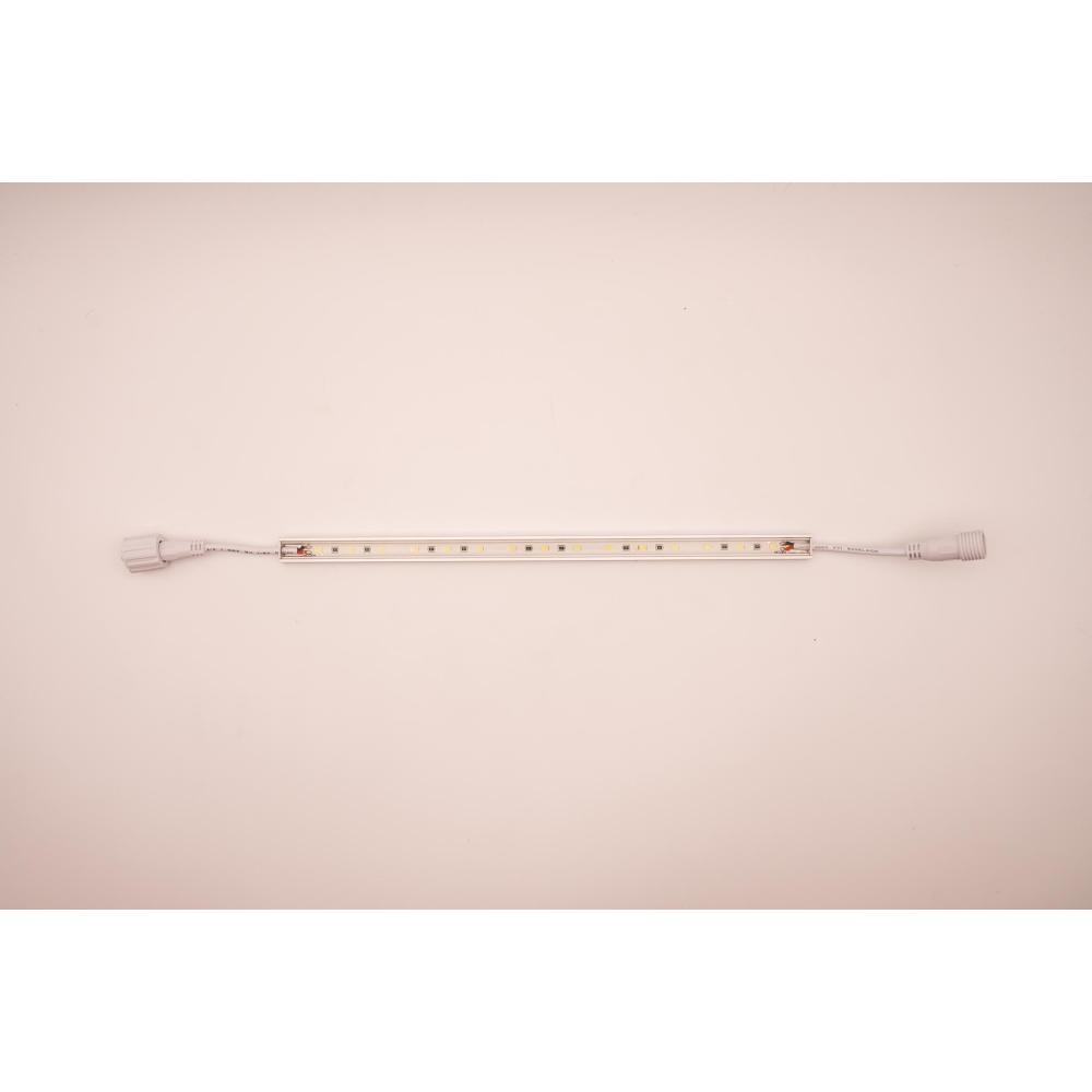 Durable aluminum-channeled LED strips featuring 15 SMD2835 LEDs each. One strip with short cords and one with long cords for flexible installation. Brightness 200–240 lumens, 50,000-hour lifespan. Power supply not included.